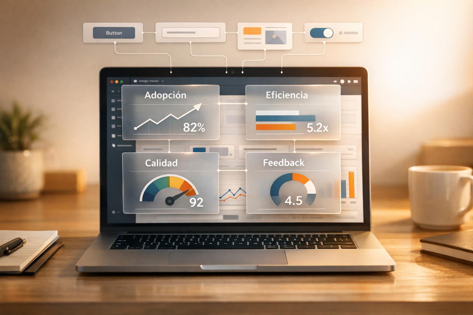 Mide el impacto de tu sistema de diseño: define KPIs, recoge datos cuantitativos y cualitativos, analiza adopción y eficiencia, e itera con feedback y dashboards.