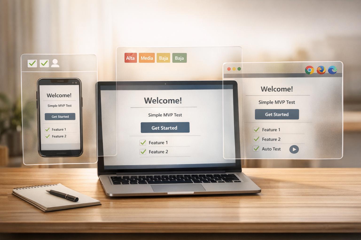Guía práctica para testear un MVP en varios navegadores y dispositivos: configuración, pruebas manuales y automatizadas, análisis de usuarios y priorización de arreglos.
